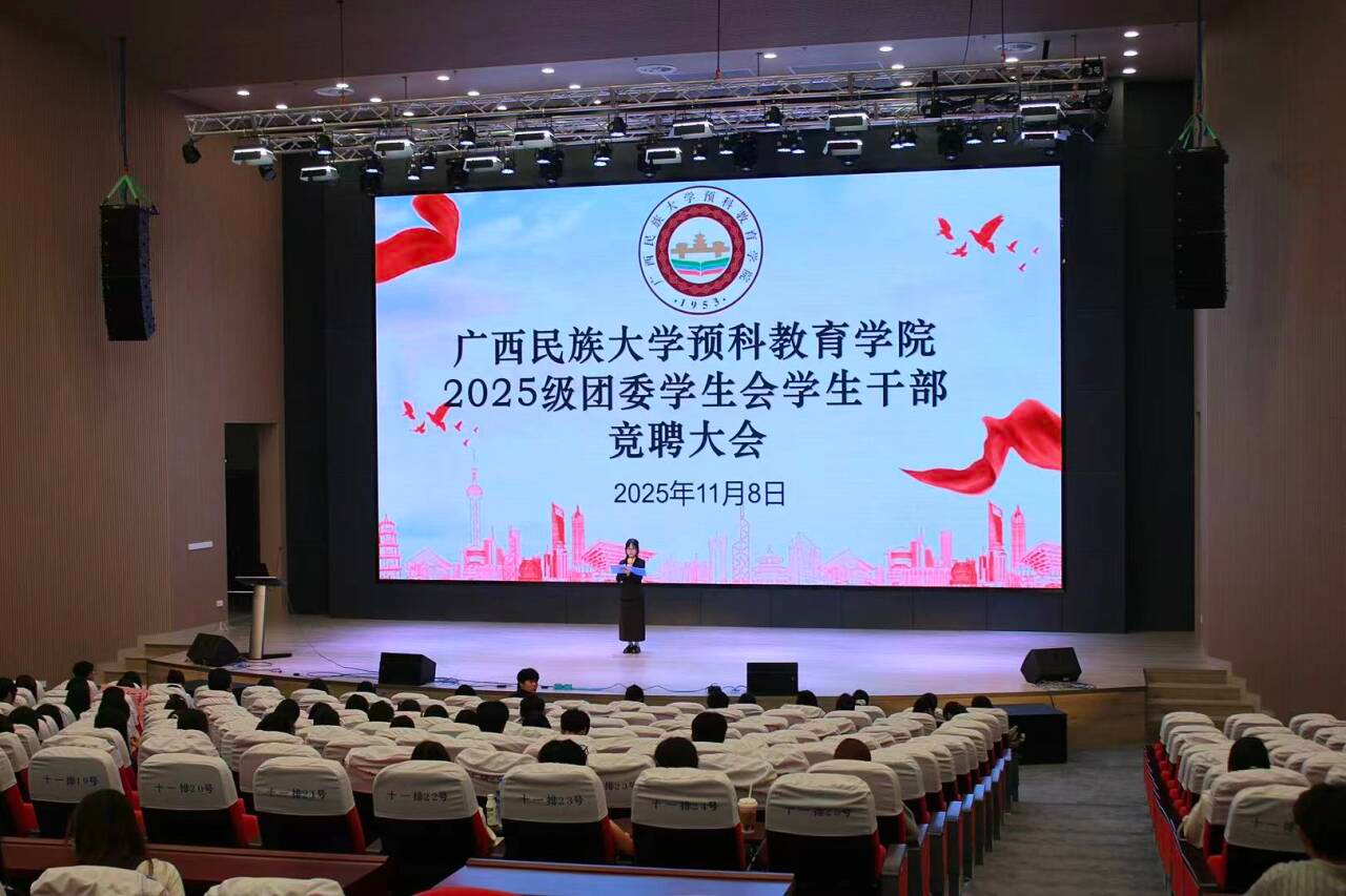 11月8日,预科教育学院在武鸣校区图书馆礼堂开展2025级团委学生会干部竞聘大会。学院专职辅导员,各班级学生代表,各部门临时成员,往届团委学生会学生干部代表参加。