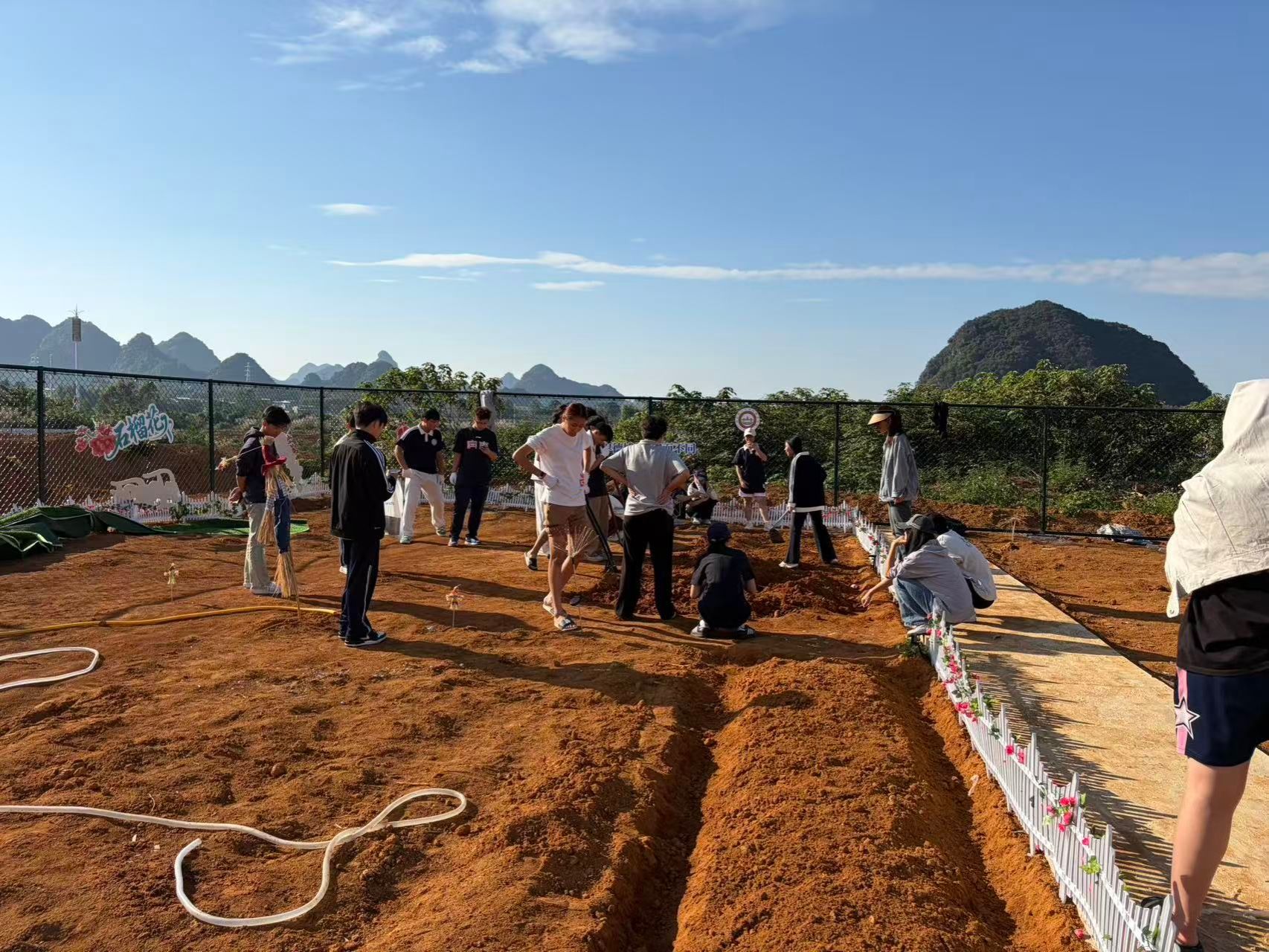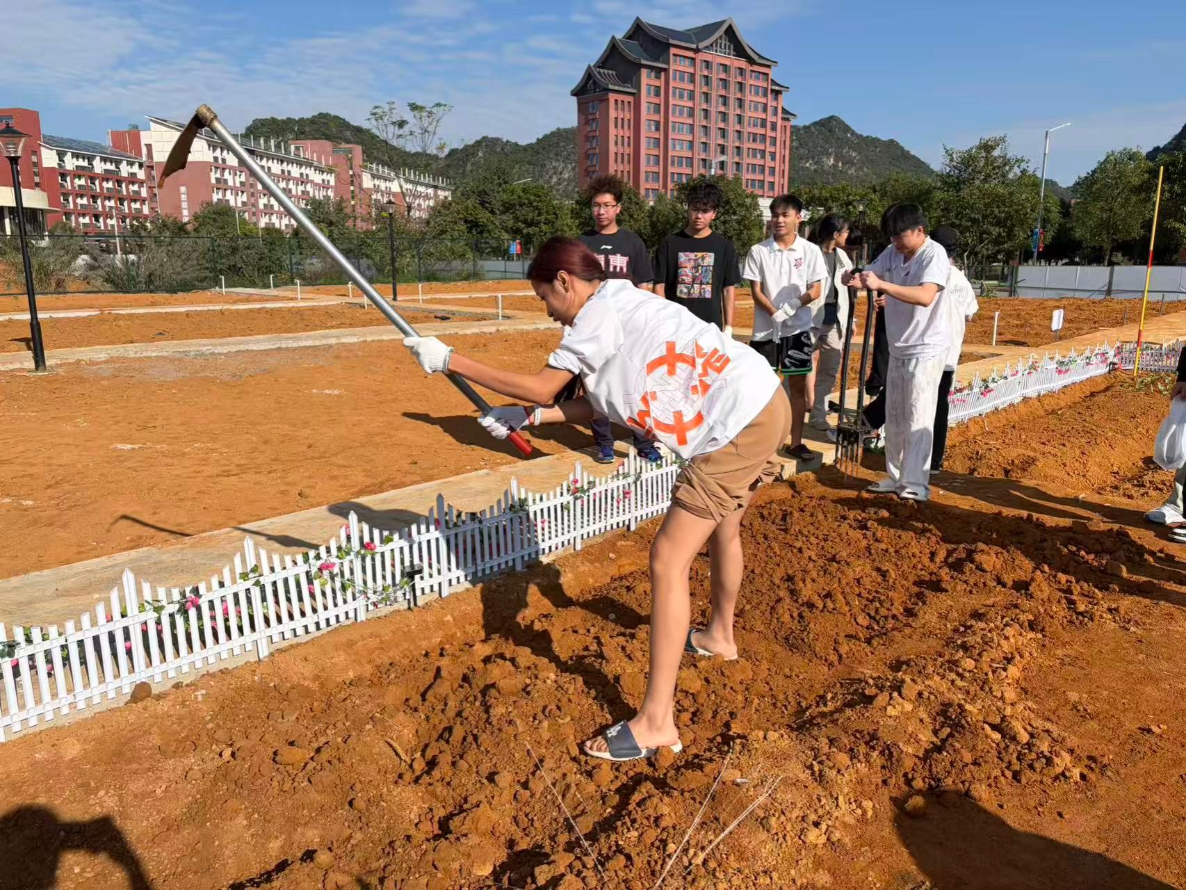 农场位于二号教学楼后,园内土地肥沃,规划有序。为营造浓厚的劳动与文化氛围,园区周边装点了白色围栏、稻草人与太阳能蒲公英灯。栅栏墙上悬挂的广西民族大学校徽、预科教育学院院徽,以及“石榴花开”“厚德博学、和而不同”等标识标语,生动体现了在劳动实践中凝聚民族力量、促进民族团结的深刻内涵。“小‘预’园农场”划分为教职工种植区、团委学生会种植区及班级代表种植区等多个区域,激发了全院师生参与劳动实践的热情,大家通过亲身体验农耕乐趣,感悟劳动价值。这一创新举措是学院推动“五育并举”、培育德智体美劳全面发展的新时代青年的生动实践。